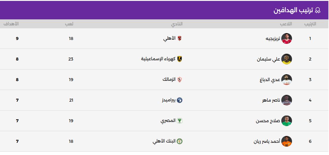 وجاء جدول ترتيب هدافي الدوري المصري بعد مباريات الاثنين كالتالي: