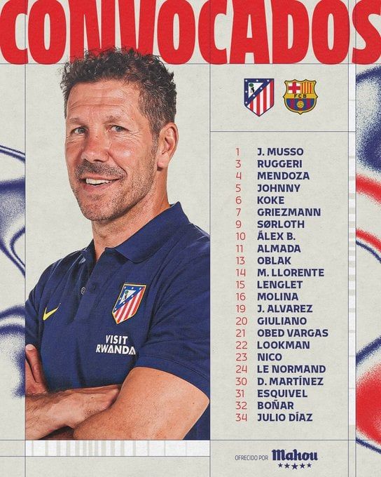 قائمة أتلتيكو مدريد لمواجهة برشلونة