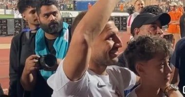 ونشرت قناة أون سبورت فيديو للاعب طارق حامد مرتدى تيشرت الزمالك برفقة نجله وتحية الجمهور.