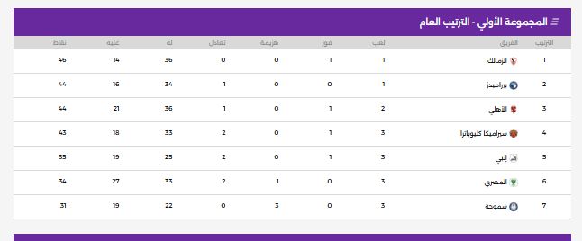 جدول ترتيب المجموعة الاولى