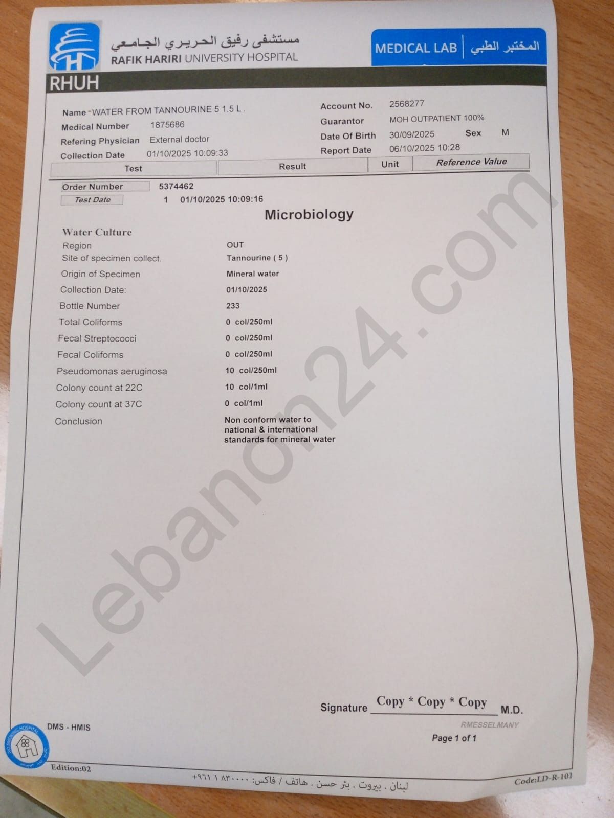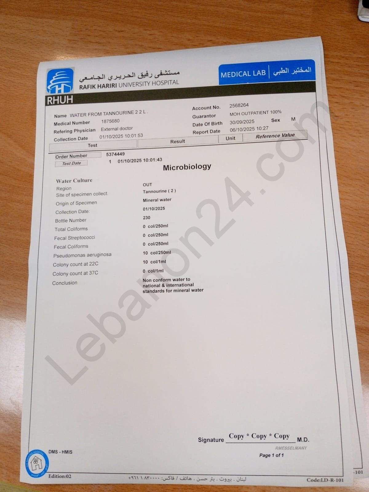 وشدّد هاني على أنّ "وزير الصحة كان مصراً على إصدار القرار اليوم، بهدف ضمان جودة المياه في الأسواق اللبنانية وعدم تعريض المستهلكين لأي مخاطر صحية".