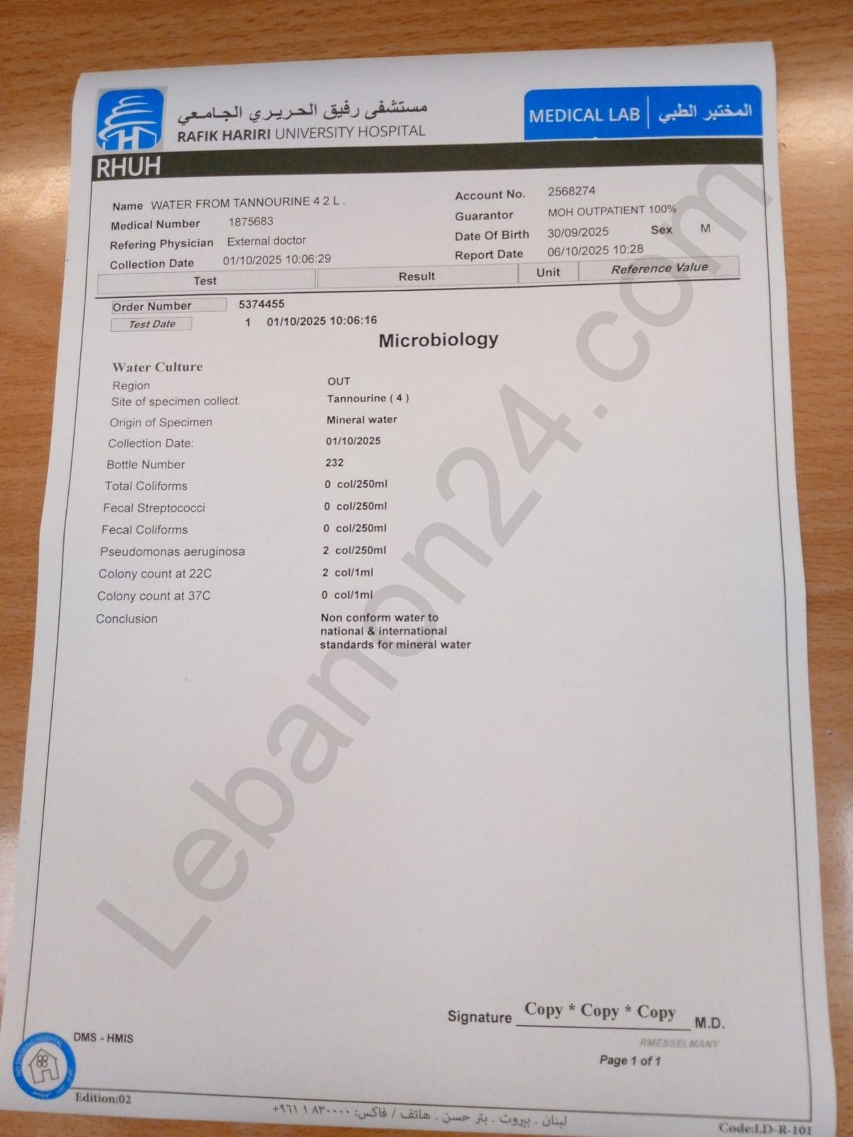 وفي حديث خاص لـ"النهار"، أكّد وزير الزراعة نزار هاني أنّ "ما أُبلِغ به من وزير الصحة راكان ناصر الدين هو أنّ العيّنات التي خضعت للفحص أظهرت مشكلات صحية محدّدة"، مشيراً إلى أنّ "القرار جاء بعد فحوص ميدانية ومخبرية أظهرت أنّ بعض العينات المأخوذة من السوق ومن معمل الشركة لم تستوفِ المعايير الصحية المطلوبة لمياه الشرب المعبأة، ما استدعى تدخلاً عاجلاً لحماية المستهلكين".