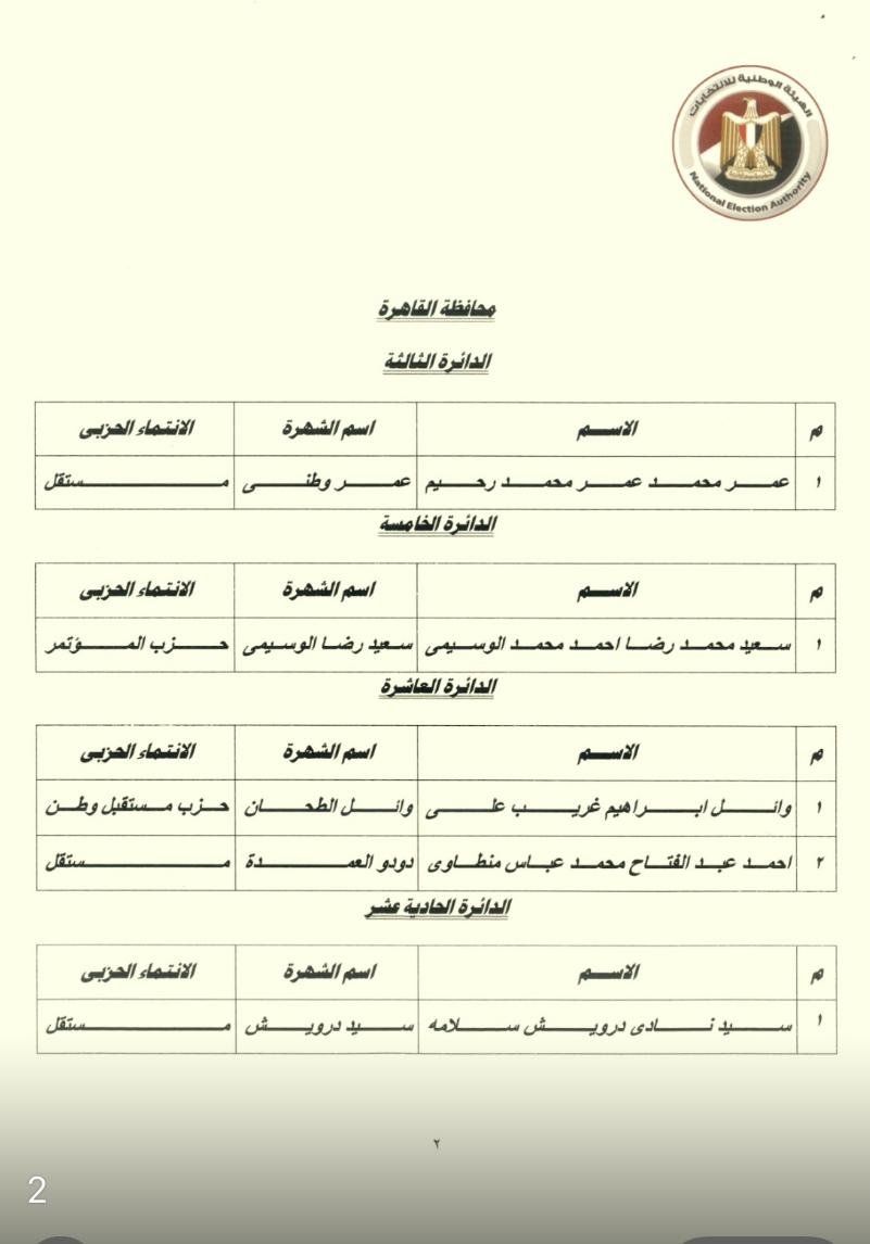 1-القاهرة والتي ضمت 19 دائرة انتخابية بها 205 مترشحًا.