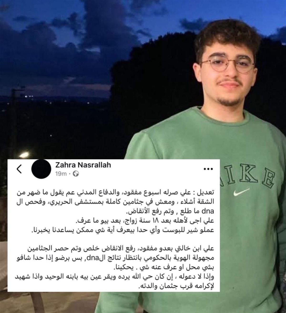 يروي قاسم عبود، والد المفقودة زهراء، عبر "لبنان24" تفاصيل الأيام القاسية التي عاشتها العائلة منذ لحظة فقدان ابنته. تنقّل بين المستشفيات بحثاً عنها من دون أن يجد إجابة واضحة، في ظل غياب آلية منظمة لإرشاد الأهالي ومساعدتهم على معرفة مصير أحبائهم.