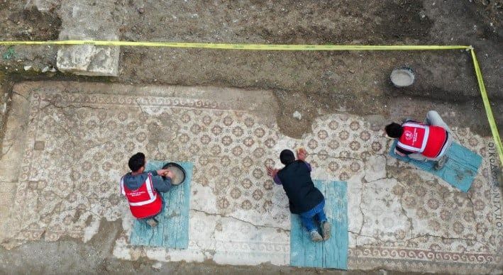 وقال ديمير إن أعمال التنقيب مستمرة بمشاركة اثنين من علماء الآثار وثمانية عمال للكشف عن الفسيفساء والبقايا المعمارية.