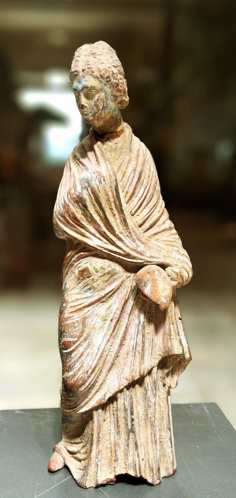 ومن أبرز القطع التي تُعرض ضمن معروضات المتحف المصري بالقاهرة وتوثق هذا التمازج الفني، تمثال من التراكوتا (الفخار المحروق) تم اكتشافه في مدينة الإسكندرية. وتعود أهمية هذا النموذج إلى تاريخ اقتنائه في عام 1889م، حيث يمثل شاهداً على الحيوية الفنية للعاصمة السكندرية، وقدرتها على استيعاب وتطوير فنون المتوسط لتلائم الذائقة المحلية التي ربطت بين رقي المظهر ودلالات الحياة اليومية.