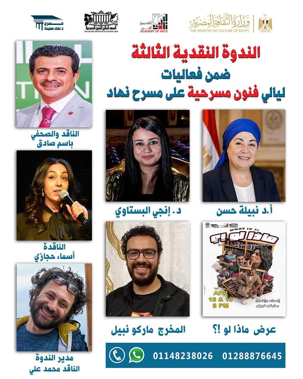 ومن المقرر إقامة ندوة نقدية يوم 19 أبريل لمناقشة العرض، بحضور نخبة من النقاد والمتخصصين، ضمن فعاليات «ليالي فنون مسرحية على مسرح نهاد».