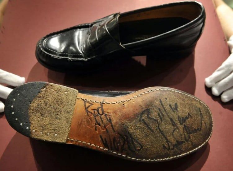 تستعد دار مزادات GWS لعرض زوج من أحذية مايكل جاكسون ، من طراز فلورشيم إمبريال، في مزاد علني يوم 2 مايو، حيث ارتدى ووقع عليه الفنان الراحل، يبدأ المزاد بسعر 7500 دولار أمريكي، وفقا لما نشره موقع" artnews".