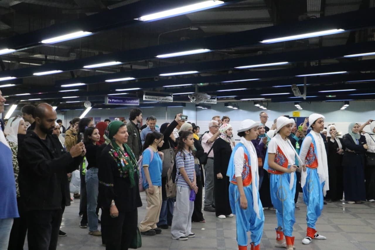 وقدم فريق أطفال وطلائع الأنفوشي للفنون الشعبية، التابع للهيئة العامة لقصور الثقافة برئاسة الفنان هشام عطوة، عرضاً مبهراً نجح في جذب انظار الركاب ، تضمن لوحات استعراضية من الفلكلور السكندري بالإضافة إلى فقرات من عدد من المحافظات المصرية، وسط تفاعل لافت من الركاب الذين توقفوا لمتابعة الفقرات في مشهد يعكس قدرة الفن على الوصول إلى الجمهور في مختلف الأماكن.