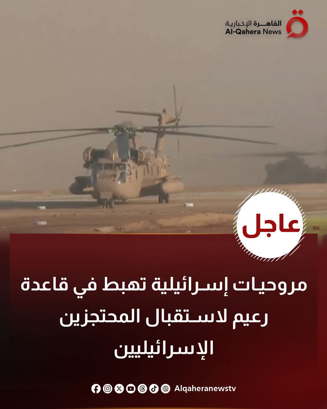 هبطت مروحيات إسرائيلية في قاعدة رعيم لاستقبال المحتجزين الإسرائيليين، وفقا لقناة القاهرة الإخبارية في نبأ عاجل.