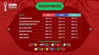 وبتدأ أسعار تذاكر الدورالثاني للبطولة من 500 درهم للفئة الأولي و300 درهم للفئة الثانية و150 درهم للفئة الثالثة ويكون سعر تذكرة الفئة الأولي لمباريات الدور قبل النهائي 600 درهم مغربي و400 درهم سعر تذكرة الفئة الثانية و200 درهم سعر تذكرة الفئة الثالثة وفي مباراة تحديد المركزين الثالث والرابع يكون سعر تذكرة الفئة الأولي 800 درهم مغربي وسعر تذكرة المستوي الثاني 500 درهم مغربي وسعر تذكرة الفئة الثالثة 300 درهم.