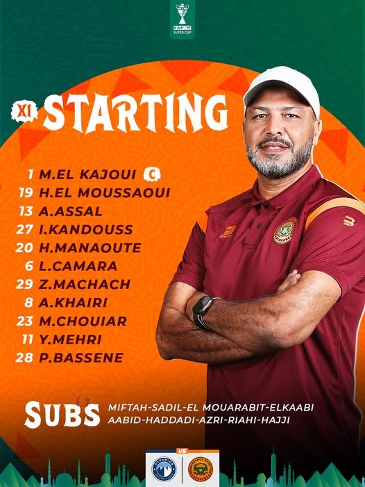 وعلى الجانب الآخر أعلن معين الشعباني مدرب نهضة بركان المغربي عن تشكيل فريقه الرسمي ويبحث عن الفوز باللقب اليوم.