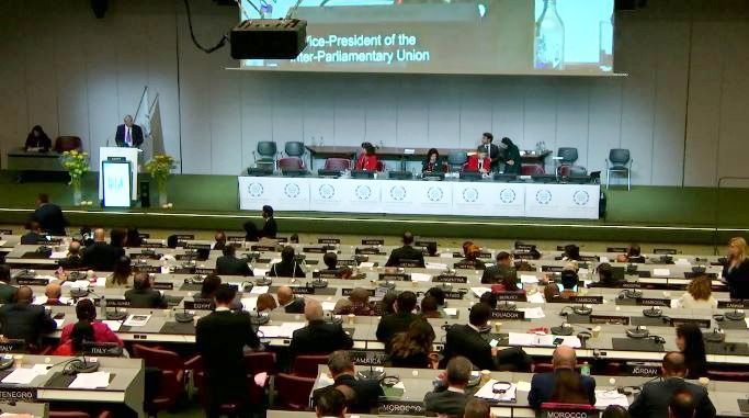 شارك المستشار الدكتور حنفي جبالي رئيس مجلس النواب في أعمال الجمعية العامة الـ 151 للاتحاد البرلماني الدولي، والمُنعقدة في جنيف، حيث ألقى سيادته كلمة بشأن موضوع  المناقشة العامة للمؤتمر" الالتزام بالمعايير الإنسانية ودعم العمل الإنساني في أوقات الأزمات"، جاء أبرز ما فيها على النحو التالي: