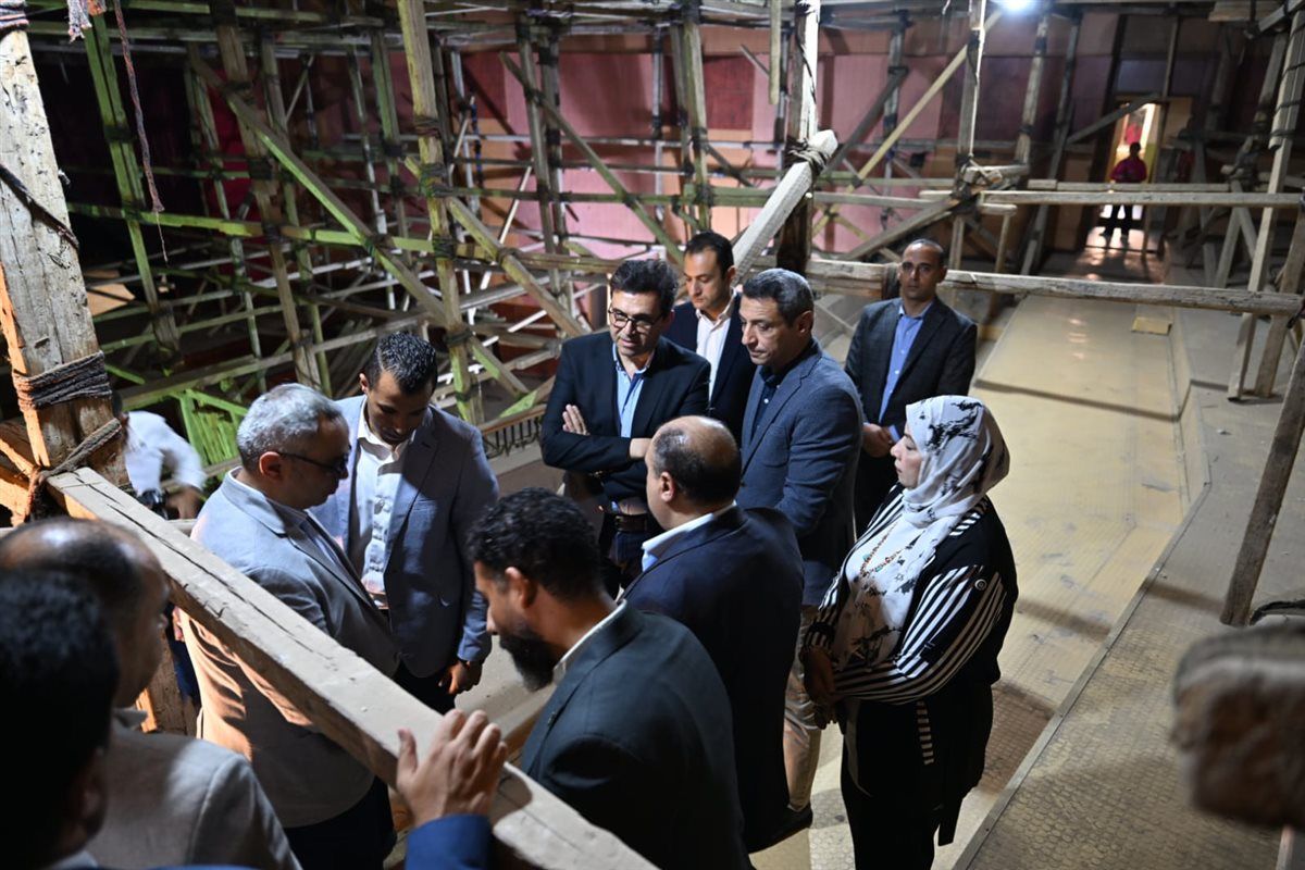 وخلال الجولة، استمع الوزير والمحافظ إلى شرح من الشركة المنفذة حول نسب التنفيذ والجدول الزمني للانتهاء من المشروع، الذي يشمل أعمال تطوير شاملة تتضمن القيام بالمعالجات الخرسانية للعناصر الإنشائية، واستكمال أعمال المباني، وتأسيس شبكات الكهرباء وإنذار الحريق، والأعمال الصحية وصيانة شبكة الإطفاء، إلى جانب تركيب أنظمة التكييف المركزي وشبكات الصوت والضوء والميكانيزم بالمسرح.