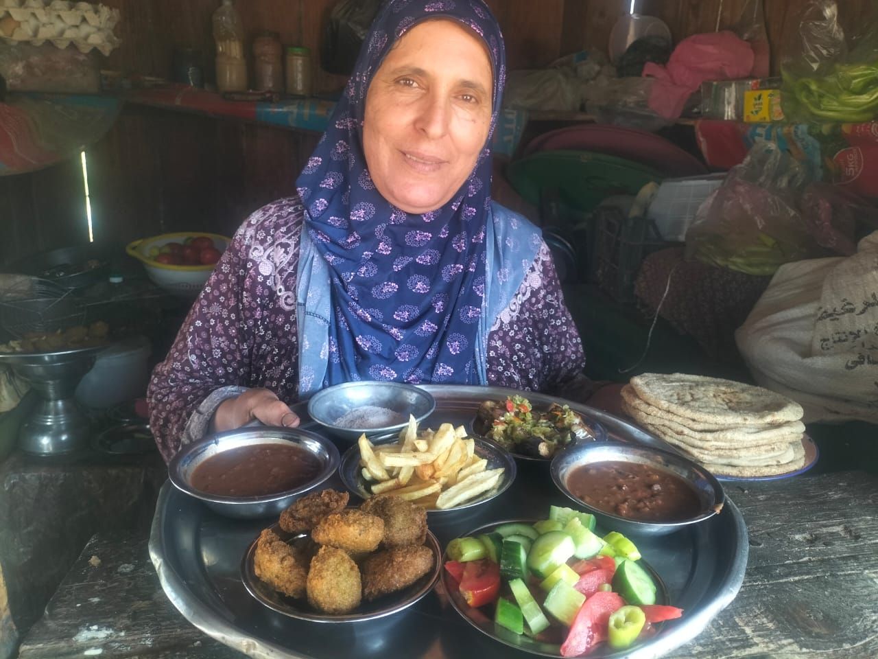 وتقول «أم محمد» بأنها تبدأ في الاستيقاظ من السادسة صباحا تصلي الفجر ثم ترتدي عبائتها وتتجه إلى الكشك الخشبي الذي يعود بداية تواجده على ضفاف البحر منذ 35 عاماً، لتبدأ يومها في تجهيز مختلف وجبات الإفطار من الفول البلدي والطعمية والبطاطس والباذنجان والجبنة القريش بالإضافة إلى المشروبات الساخنة.