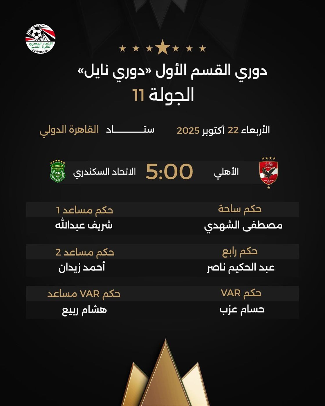 حكام مباراة الأهلي والاتحاد السكندري بدوري نايل
