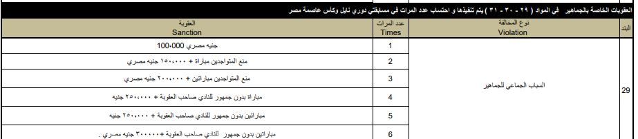 تستعد رابطة الأندية المصرية المحترفة لتوقيع غرامة مالية ومنع جماهير الأهلي من حضور مباريات الفريق لمدة مباراة بعد رصد الهتافات والسباب الجماعي من جانب الجماهير في مباراة الفريق أمام الاتحاد السكندري.