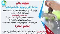 وتهيب شركة مياه الشرب والصرف الصحي بالمواطنين، والمستشفيات والمخابز الواقعة في مناطق قطع المياه، بتدبير احتياجاتهم من مياه الشرب النظيفة خلال فترة الانقطاع.
