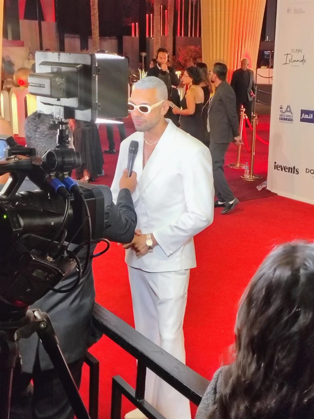 الفنان حسن أبوالروس ظهر أيضًا خلال حضوره حفل الافتتاح بإطلالة غريبة كعادته، حيث اعتاد الجهور على إطلالته غير المتوقعة وخارج الصندوق، لذلك دائمًا يلفت الأنظار له عند حضوره أي مناسبة.