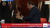 وخلال احتفالية "وطن السلام" بدار الأوبرا بمدينة الثقافة والفنون بالعاصمة الإدارية الجديدة، أشار الرئيس إلى الطفلة قائلاً: "تعالي.. تعالي"، ليلتقيها بابتسامة حانية، ويصافحها، قبل أن تجلس بجواره في لحظة إنسانية مؤثرة نالت تصفيق الحضور.