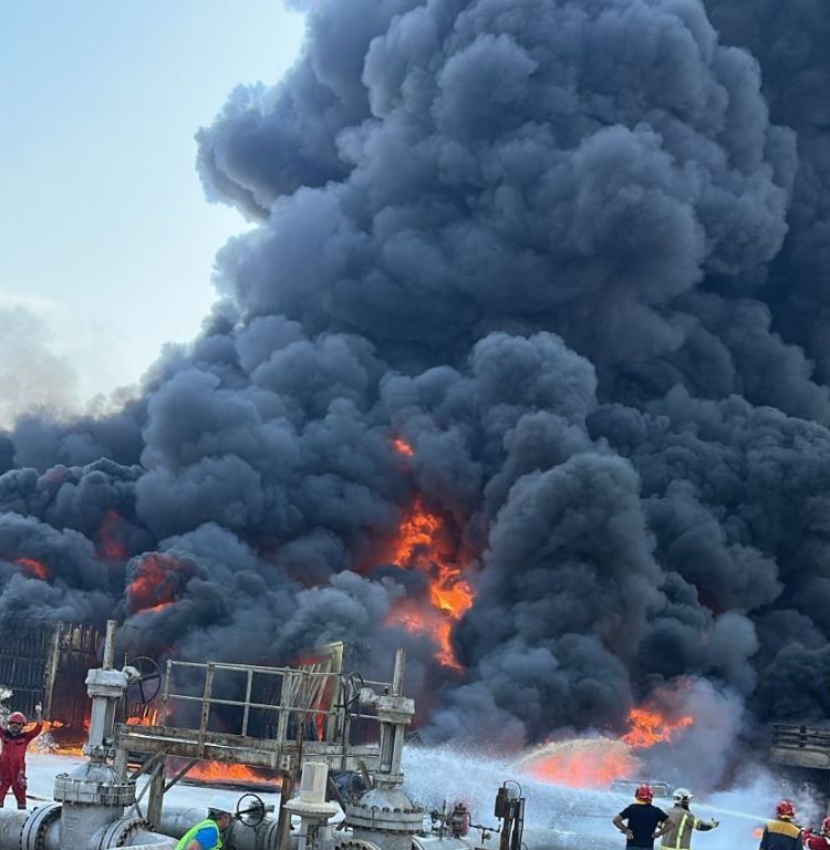 ووفق المصدر، لم يؤدى الحريق الضخم إلى توقف عمليات شحن النفط الخام للأسواق العالمية، حيث تواصل فرق الدفاع المدني عمليات إطفاء النيران.