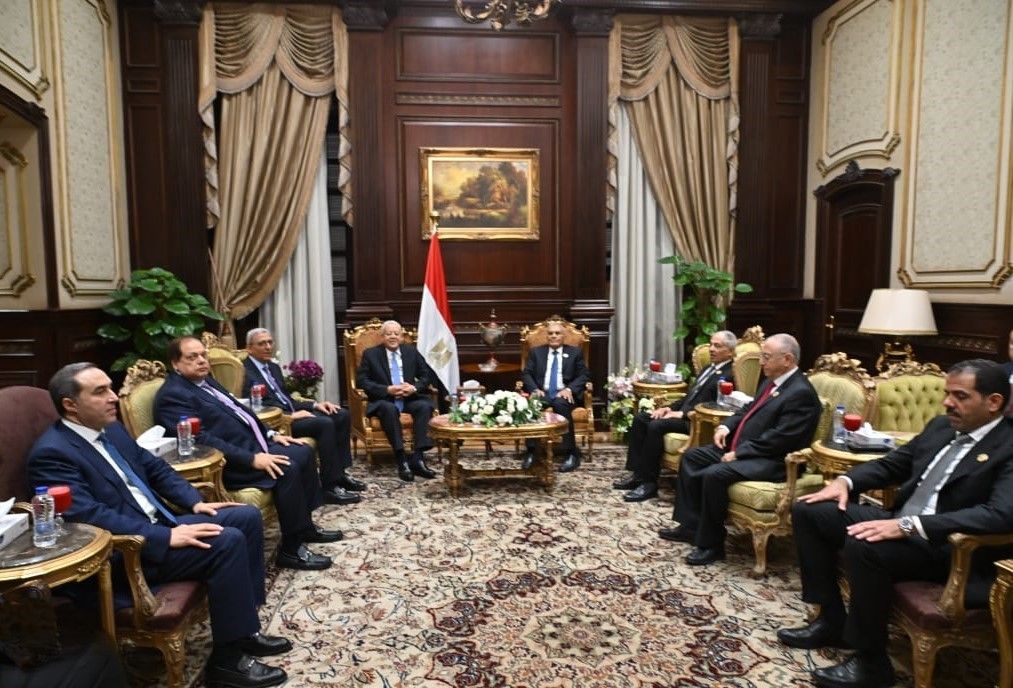 استقبل المستشار عصام فريد، رئيس مجلس الشيوخ، اليوم بمقر المجلس، المستشار الدكتور حُنفي جبالي، رئيس مجلس النواب، برفقة وفد من المجلس ضمَّ المستشار أحمد سعد الدين، والنائب محمد أبو العينين، وكيلي المجلس، والمستشار أحمد مناع، الأمين العام لمجلس النواب.