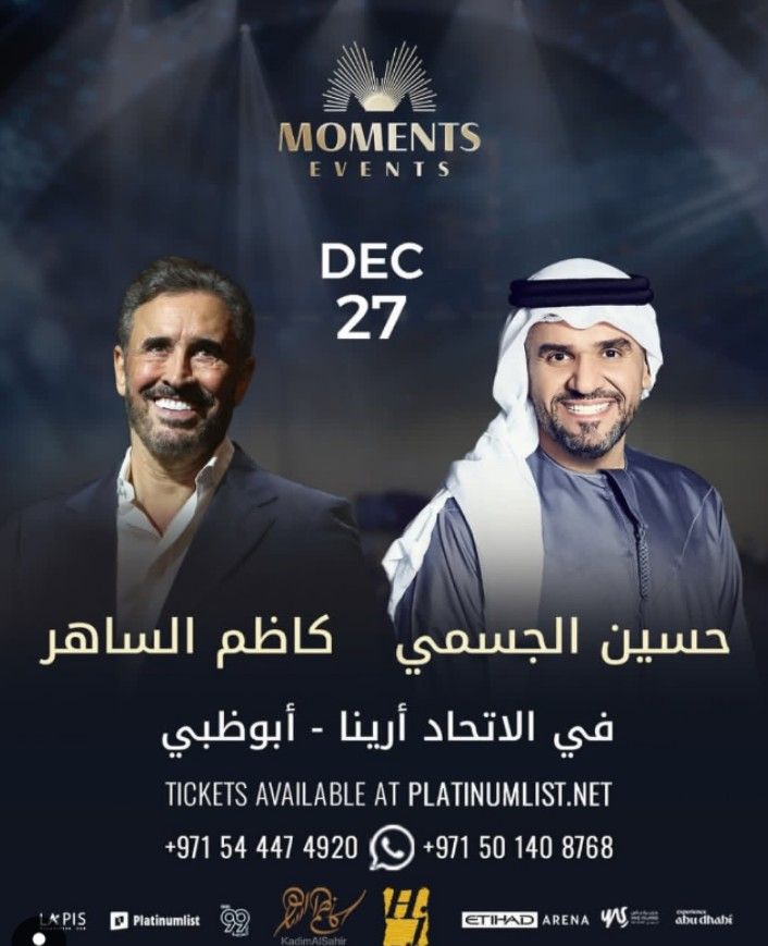 أسعار تذاكر حفل حسين الجسمي وكاظم الساهر في أبو ظبي
