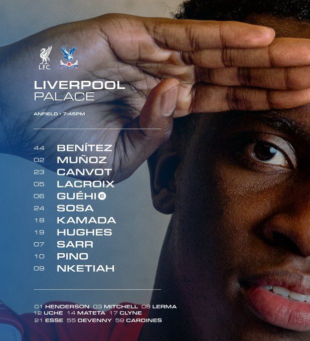 تشكيل كريستال بالاس ضد ليفربول في كأس رابطة المحترفين الإنجليزية