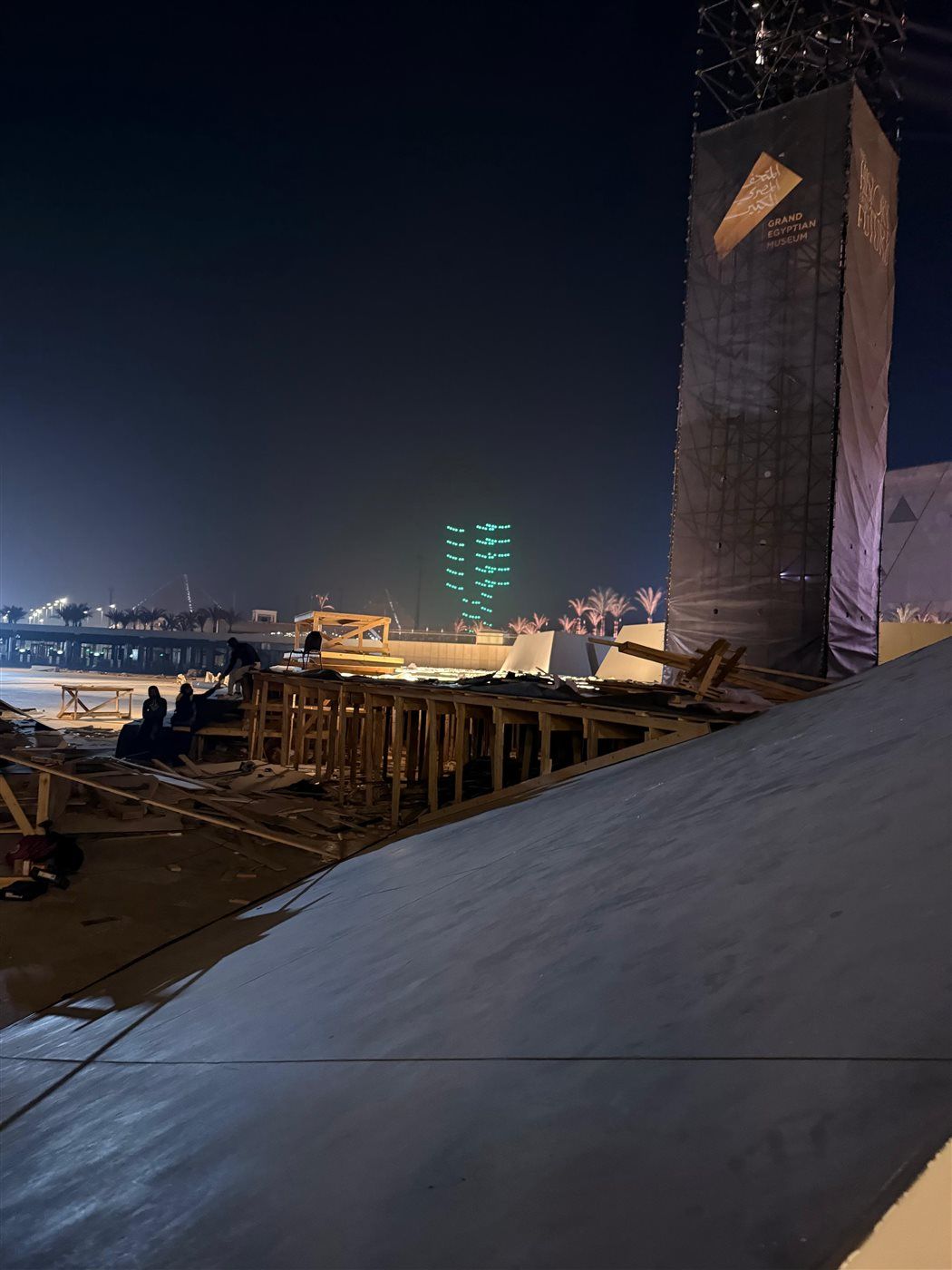 وتشير المعلومات إلى أن أعمال البناء لمقر الاحتفال ومسرحه بدأت منذ شهر مايو الماضي، في سباق مع الزمن لضمان جاهزية الموقع قبل اليوم المحدد، وقد تم تكليف شركة ليد ماركتينج سولوشن (Lead Marketing Solutions) بتنفيذ هذا المسرح العملاق وهياكل الاحتفال المؤقتة.