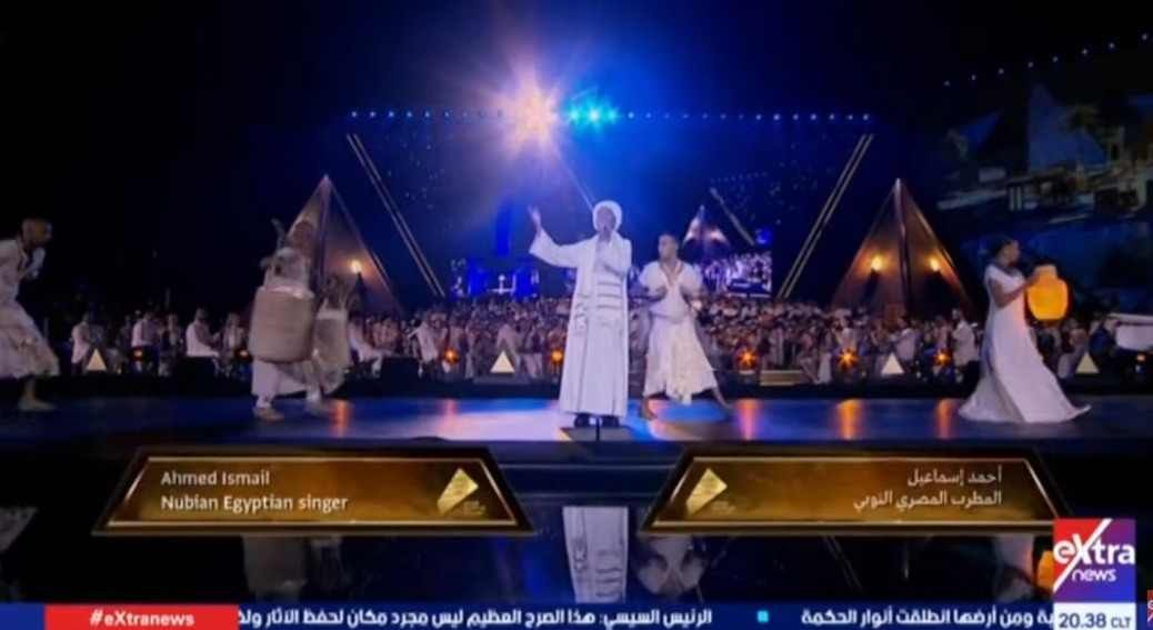 المطرب النوبي أحمد إسماعيل وحنين الشاطر في حفل افتتاح المتحف المصري الكبير