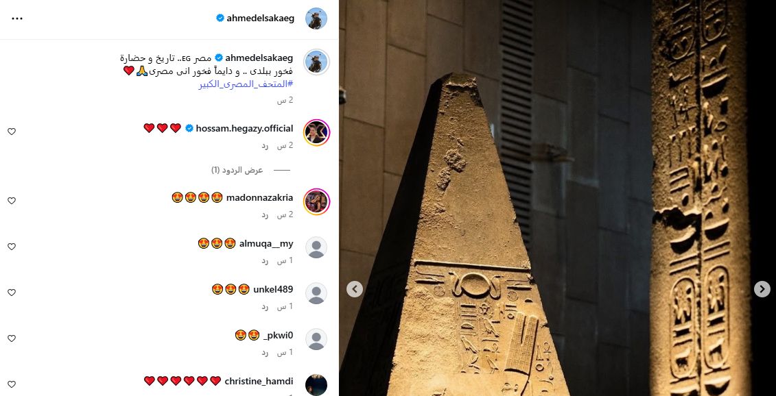 ونشر أحمد السقا عبر صفحاته الرسمية بمواقع التواصل الاجتماعي صور للمتحف المصري الكبير وعلق قائلا: “مصر.. تاريخ وحضارة. فخور ببلدي.. ودايمًا فخور أني مصري ????❤️”.