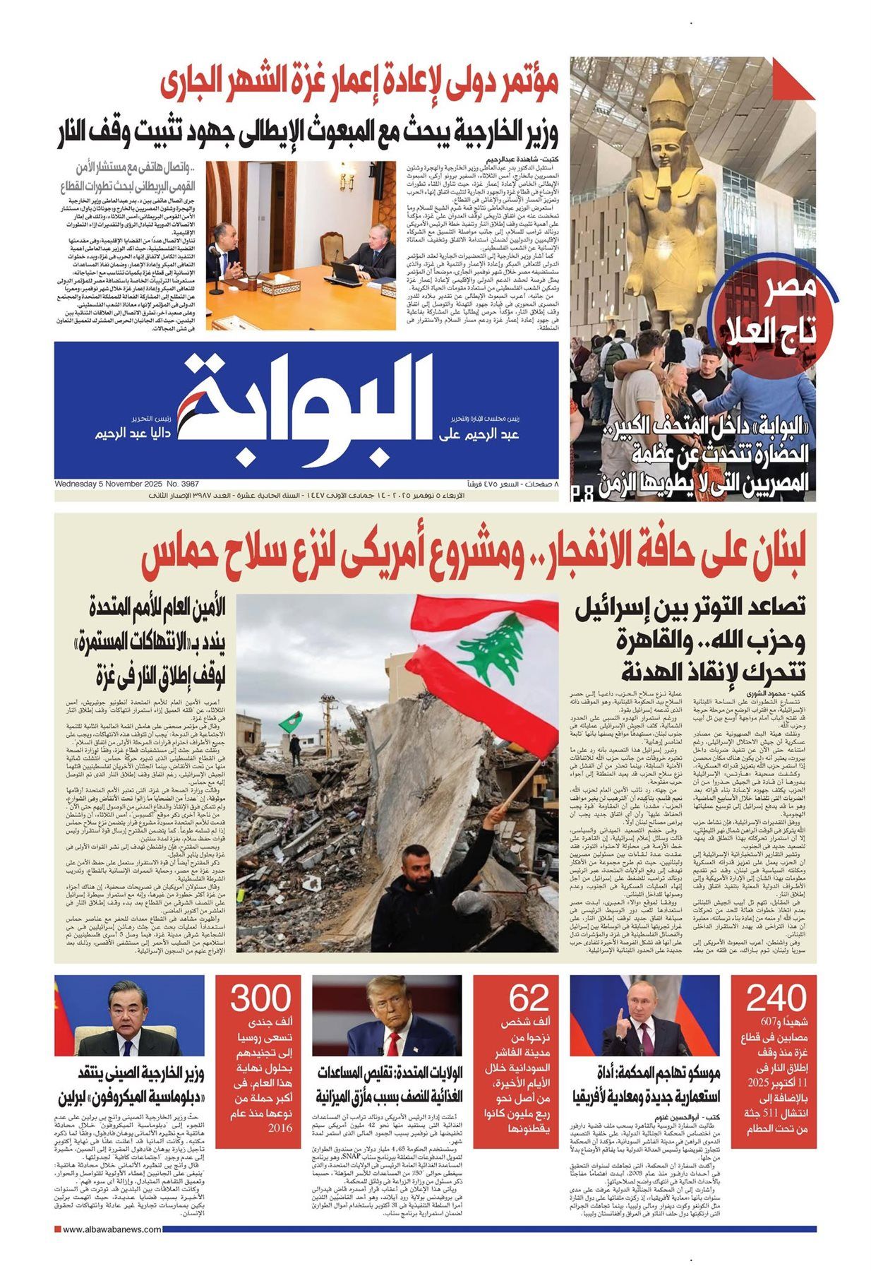 تقرأ غدًا في العدد الجديد من جريدة «البوابة»، الصادر بتاريخ الأربعاء 5 نوفمبر 2025، مجموعة من الموضوعات والانفرادات المهمة، ومنها: