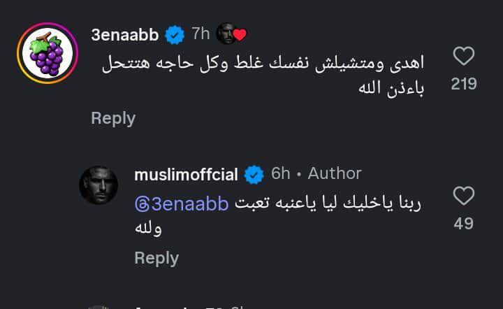 وعلق عنبة على لايف مسلم الاخير على حسابه الرسمي بموقع تبادل الصور والفيديوهات انستجرام والذي كان يكشف من خلاله مشكلته مع النقابة، فقال وفقا لما رصده موقع تحيا مصر: "اهدى ومتشيلش نفسك غلط، وكل حاجة هتتحل باذن الله".