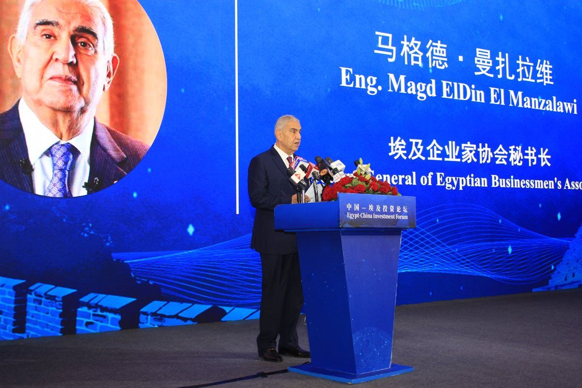 في كلمته الافتتاحية قال المهندس مجد الدين المنزلاوي الأمين العام لجمعية رجال الأعمال المصريين، إن تنظيم هذا المنتدى حلمًا عملت الجمعية على تحقيقه منذ فترة، وجاء تتويجًا لمسيرة طويلة من العمل والتعاون التي تقوده جمعية رجال الأعمال المصريين من خلال لجنة تنمية العلاقات الاقتصادية مع الصين والتي تم انشاؤها عام 2007، حيث قامت الجمعية بتأسيس تلك اللجنة ايمانًا منها بأن الصين هي مستقبل الاقتصاد العالمي.