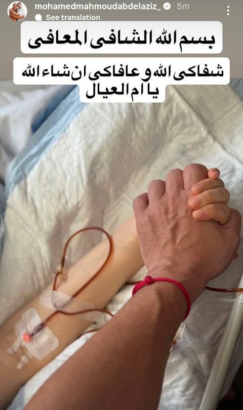 نشر الفنان محمد محمود عبد العزيز منشورًا عبّر فيه عن مشاعره القلقة وحبه لزوجته التي لا تزال تعاني من آثار الوعكة الصحية التي لحقت بها عقب الولادة، قائلًا وفقا لما رصد موقع تحيا مصر عبر حسابه الرسمي على موقع تبادل الصور والفيديوهات انستجرام: “شفاكي الله وعافاكي يا أم العيال إن شاء الله، ربنا يتم شفاكي على خير ويقومك لينا بألف سلامة”، وكلمات محمد محمود عبد العزيز المليئة بالعاطفة والرجاء لامست قلوب متابعيه الذين تفاعلوا معه بالدعاء والدعم، متمنين لزوجته الصحة والعافية بعد رحلة طويلة من المعاناة بدأت منذ ولادتها قبل أسابيع.