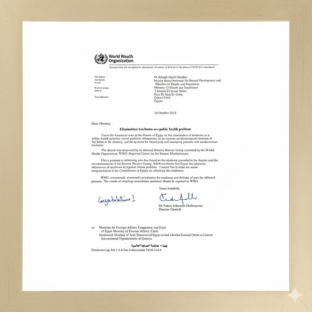 يُذكر أن مرض التراكوما كان يُصنَّف سابقًا من بين الأسباب الرئيسية للإصابة بالعمى في مصر، قبل أن تتمكن الدولة من القضاء عليه عبر برامجها المتكاملة في الوقاية والعلاج والرعاية الصحية المجتمعية.
