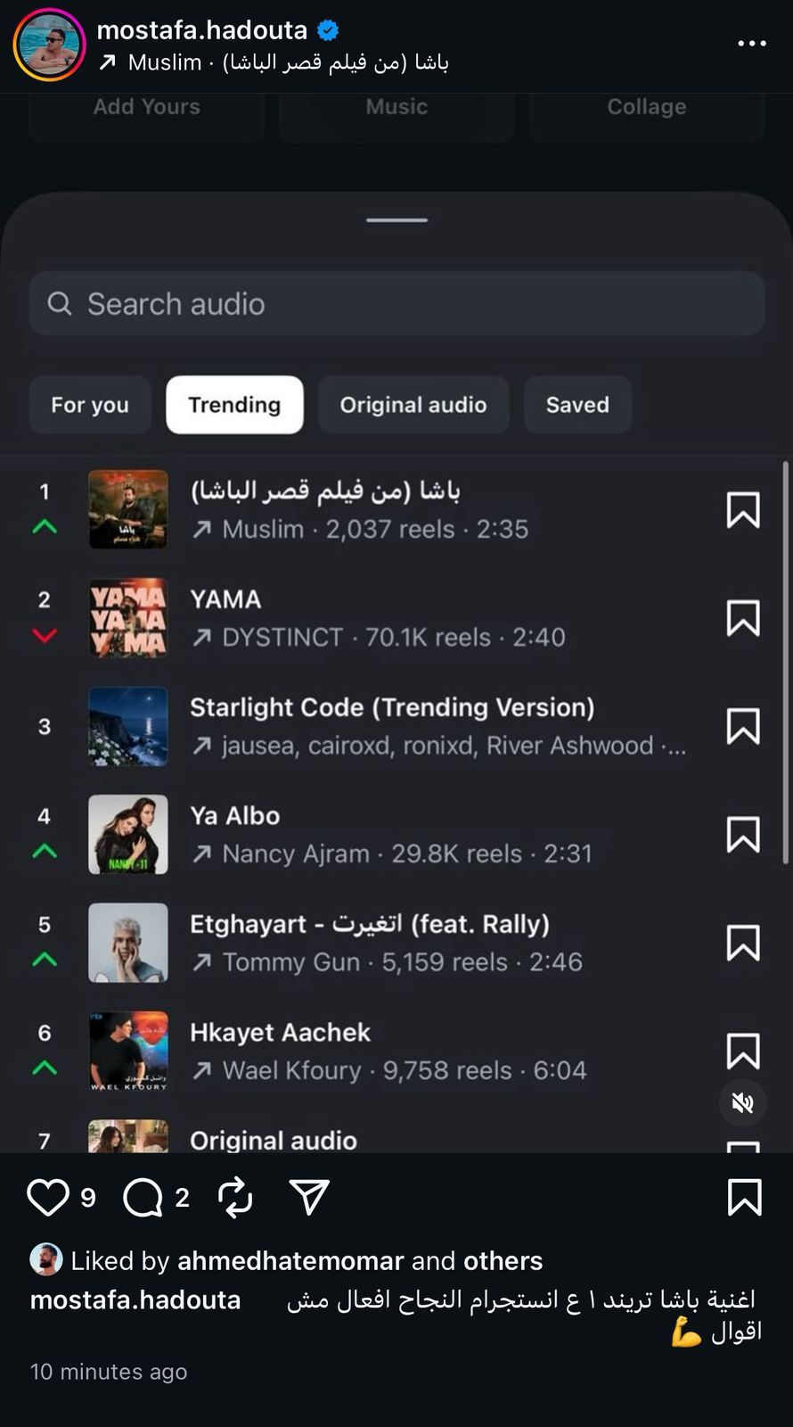 وكتب مصطفى حدوتة، وهو يحتف بنجاح أغنية باشا، وفقا لما رصده موقع تحيا مصر، عبر حسابه على انستجرام: "أغنية باشا تريند رقم ١ على انستجرام.. النجاح أفعال مش أقوال".