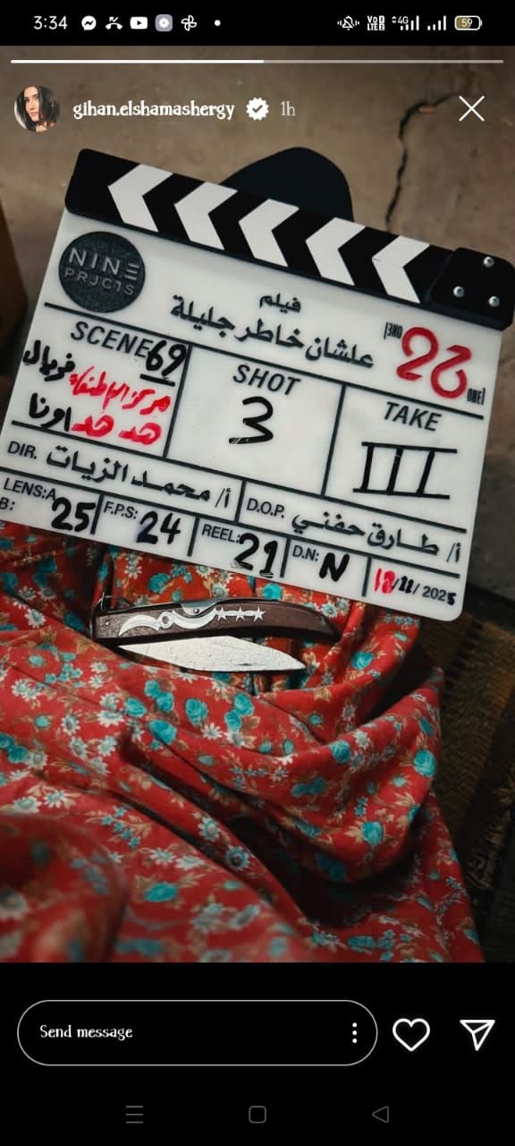 وشاركت الفنانة جيهان الشماشرجي، صورة لكلاكيت فيلم عشان خاطر جليلة، وفقا لما رصده موقع تحيا مصر، وذلك عبر خاصية استوري صفحتها الرسمية على موقع التواصل الاجتماعي إنستجرام، معلنة من خلاله بدء تصوير مشاهدها.