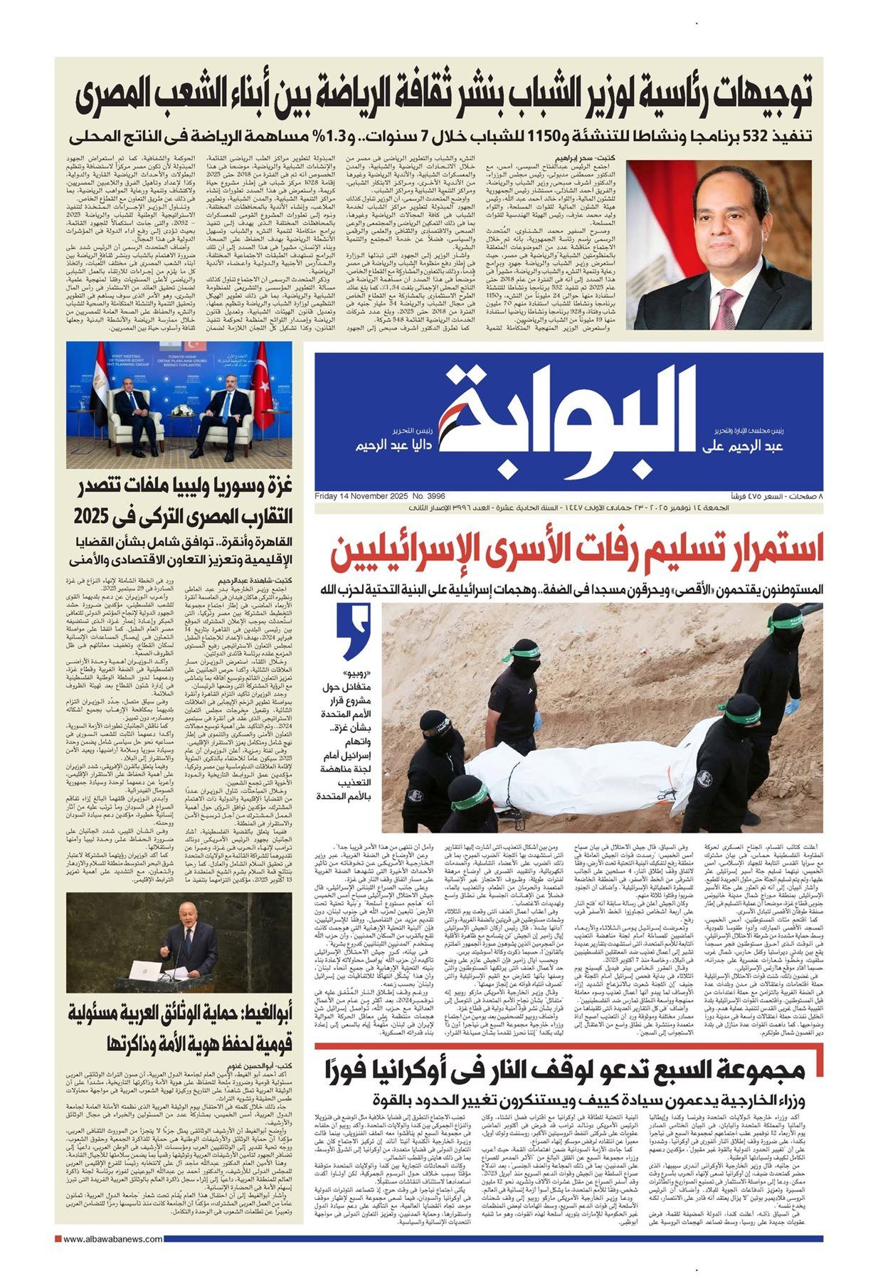 تقرأ غدًا في العدد الجديد من جريدة «البوابة»، الصادر بتاريخ الجمعة 14 نوفمبر 2025، مجموعة من الموضوعات والانفرادات المهمة، ومنها: