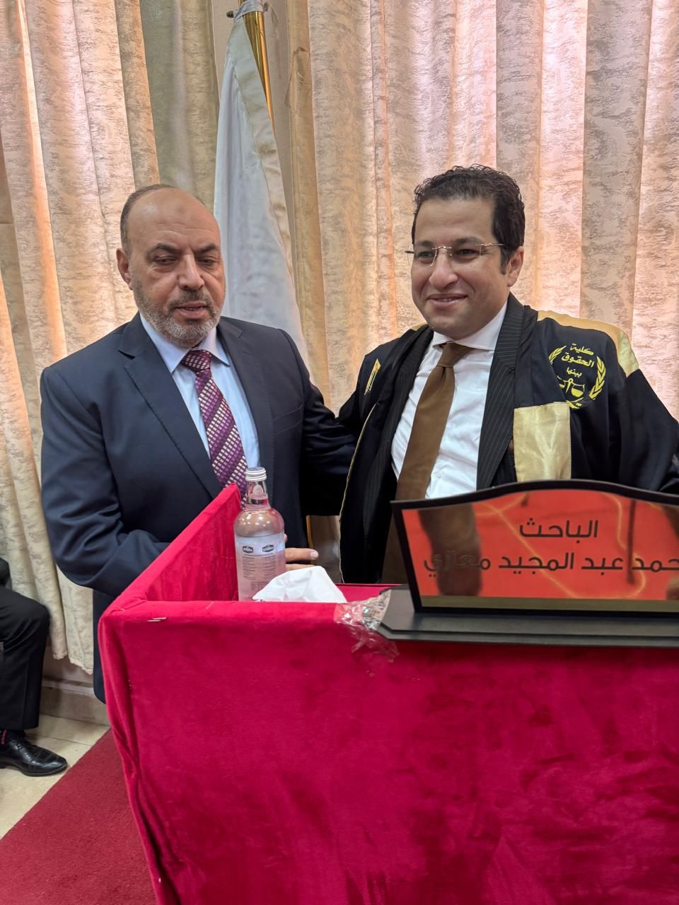 في قاعة تفيض علمًا وتقديرًا، وعلى أرض جامعة بنها العريقة، سطّر الباحث محمد عبدالمجيد فصلًا جديدًا من فصول السعي الأكاديمي، حيث تلاقت في رسالته معاني العدالة بعمق الفكر القانوني، ليُولد إنجازٌ يُضاف إلى رصيد الباحثين المخلصين للعلم والقانون.