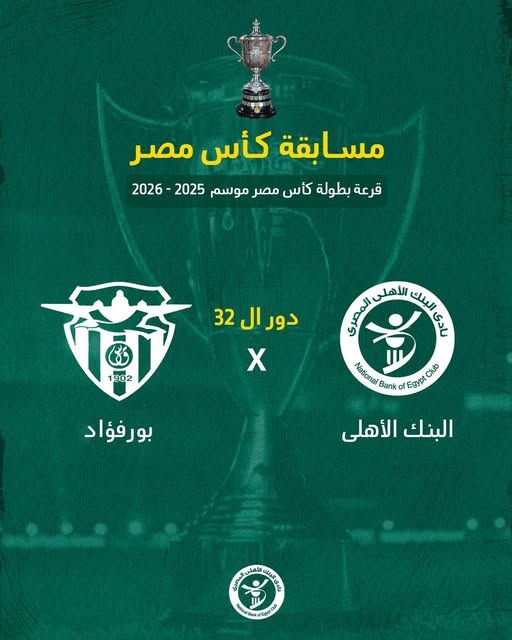 أسفرت قرعة كأس مصر لدور الـ32، التي أُجريت اليوم، عن مواجهة متوازنة تجمع فريق البنك الأهلي بنظيره بورفؤاد، ضمن منافسات النسخة الحالية من البطولة الأكثر عراقة في الكرة المصرية.