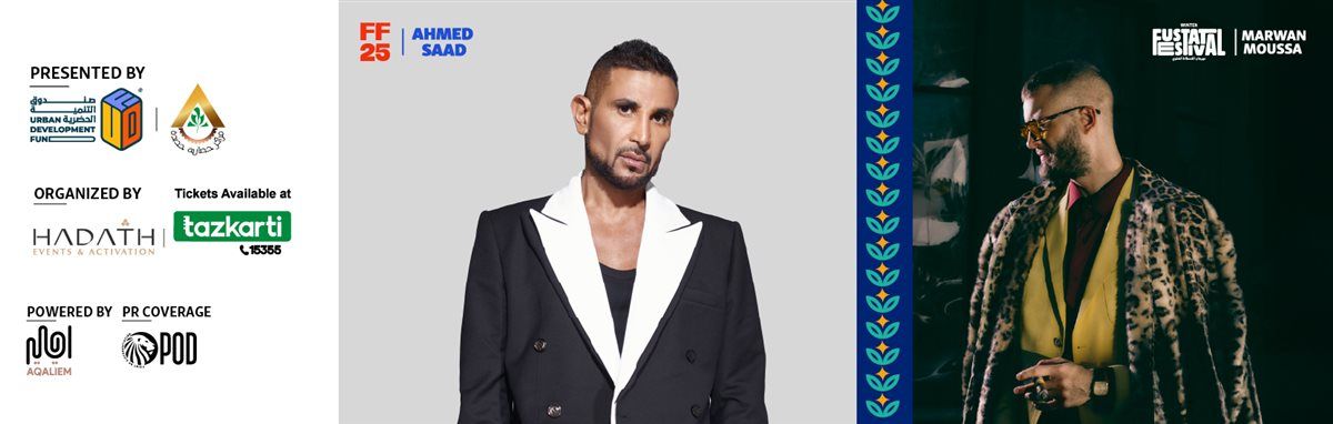 ينتظر جمهور الفنان أحمد سعد حفله المقبل ضمن مهرجان تلال الفسطاط الشتوي 2025، والذي يعد الحفل الأول له بعد تعرضه لحادث سير، ويشاركه الحفل نجم الراب مروان موسى.