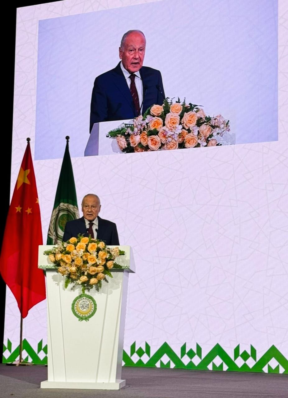 وأشار أبو الغيط في كلمته إلى الاحتفال هذا العام بالذكرى 80 لتأسيس جامعة الدول العربية التي كانت ولازالت وستظل جامعة حاضنة وعربية أصيلة، تعبر عن الانتماء والمصير المشترك للدول العربية، والتي تمثل الإطار الوحيد الجامع لكافة الدول العربية. ولفت أبو الغيط إلى سعي الجامعة المستمر لإقامة شراكات وعلاقات تعاون مع عدد من الدول والتجمعات الإقليمية والدولية وفي مقدمتها جمهورية الصين الشعبية، مشيراً على نحو خاص إلى النجاح في تأسيس منتدى التعاون العربي الصيني قبل أكثر من 20 عاماً، والتطلع إلى مواصلة الزخم الكبير الذي أرساه المنتدى وصولا إلى عقد القمة العربية الصينية الثانية المقررة في عام 2026 في الصين.