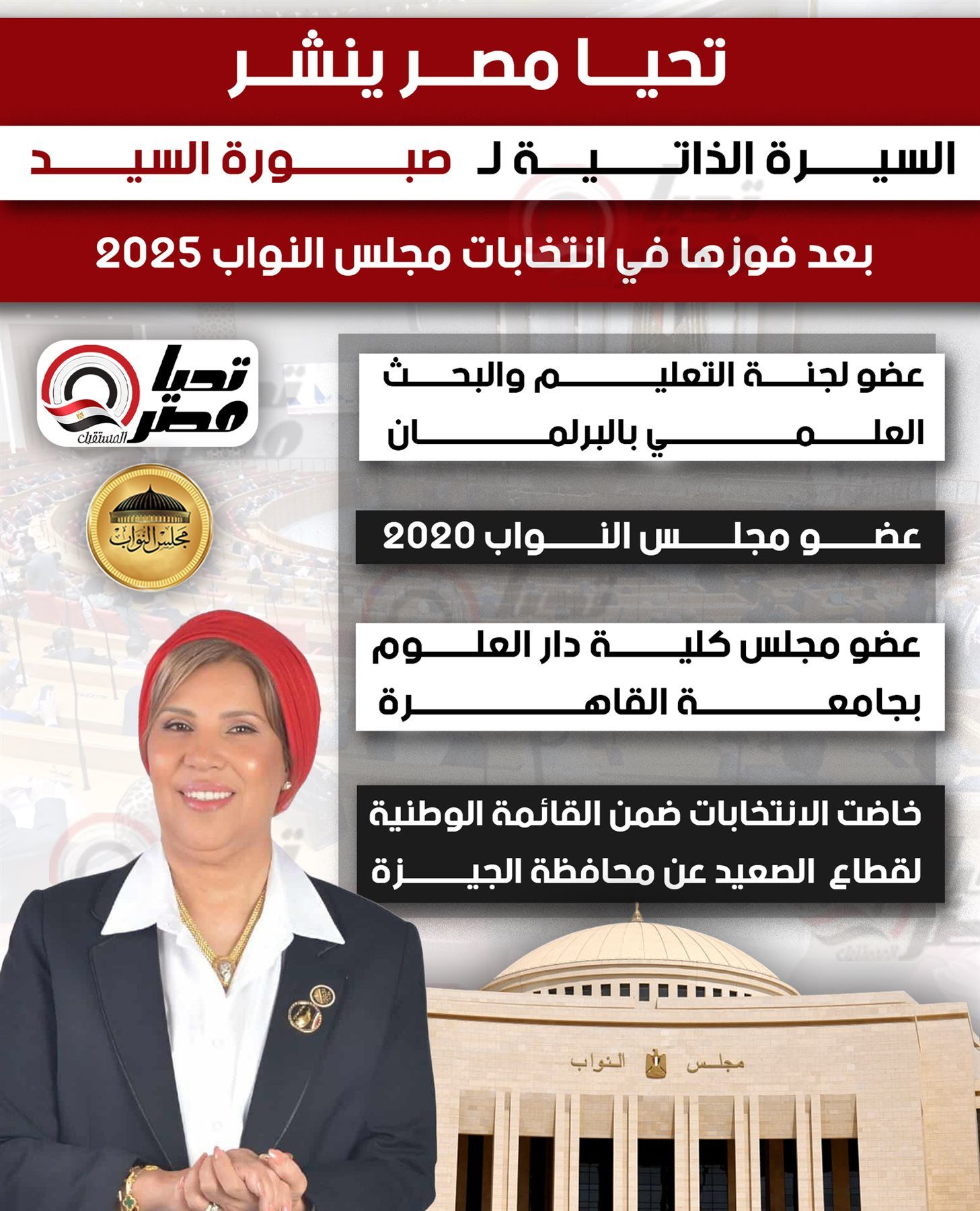 ينشر تحيا مصر السيرة الذاتية لـ صبورة السيد بعد فوزها في انتخابات مجلس النواب 2025.