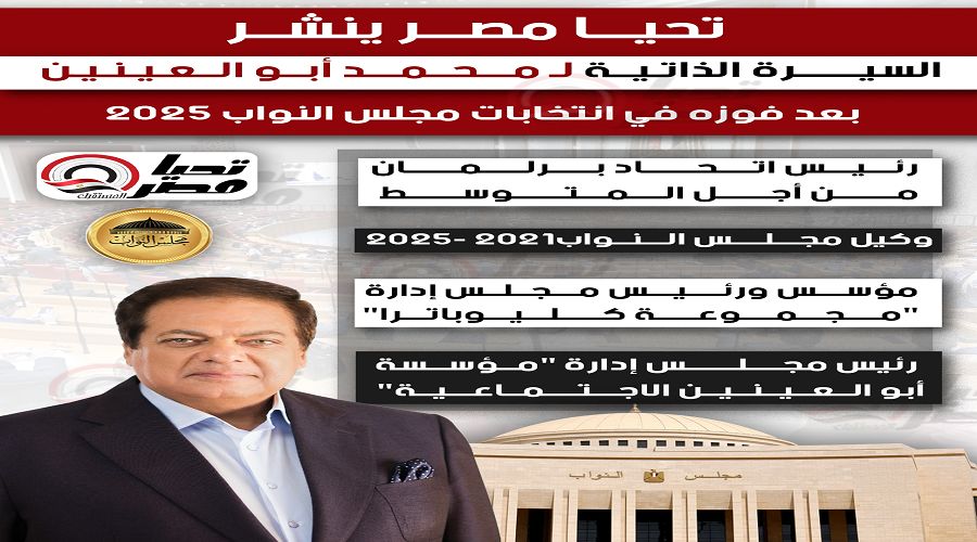 ينشر تحيا مصر السيرة الذاتية لـ محمد أبو العينين بعد فوزه في انتخابات مجلس النواب 2025.