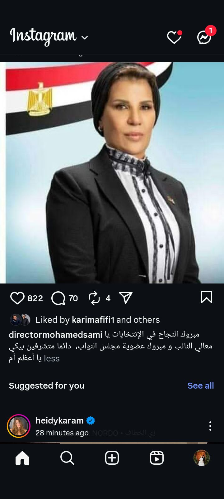 حرص المخرج محمد سامي على تهنئة والدته، النائبة صبورة السيد بعد فوزها في انتخابات مجلس النواب، وذلك في منشور عبر حسابه الرسمي بموقع تبادل الصور والفيديوهات انستجرام.