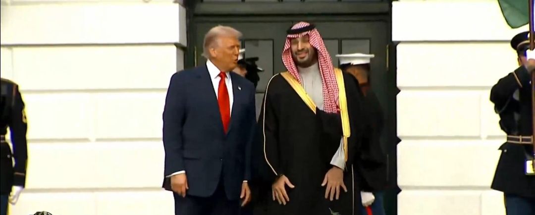 وتصافح الزعيمان، وتبادلا بعض الكلمات. ثم وقفوا لبضع لحظات خارج البيت الأبيض يشاهدون تحليق يعتقد أنه لطائرات مقاتلة من طراز F-35. ثم دخل ولي العهد والرئيس البيت الأبيض، حيث سيشاركان في لقاء ثنائي.