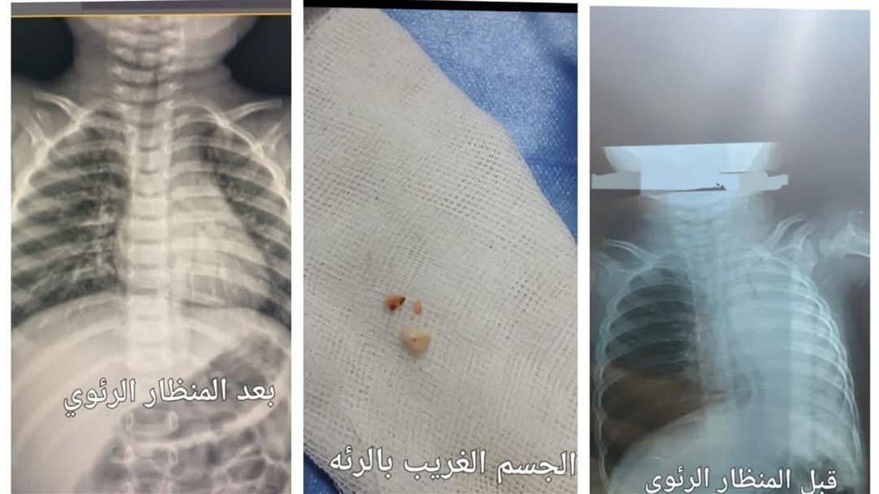 وقامت الفرق الطبية بعناية الأطفال، وتحت إشراف الدكتورة غادة عصام حمودة مدير عناية الأطفال، بإعادة تقييم الحالة، حيث تم الاشتباه في وجود جسم غريب داخل الرئة اليسرى.