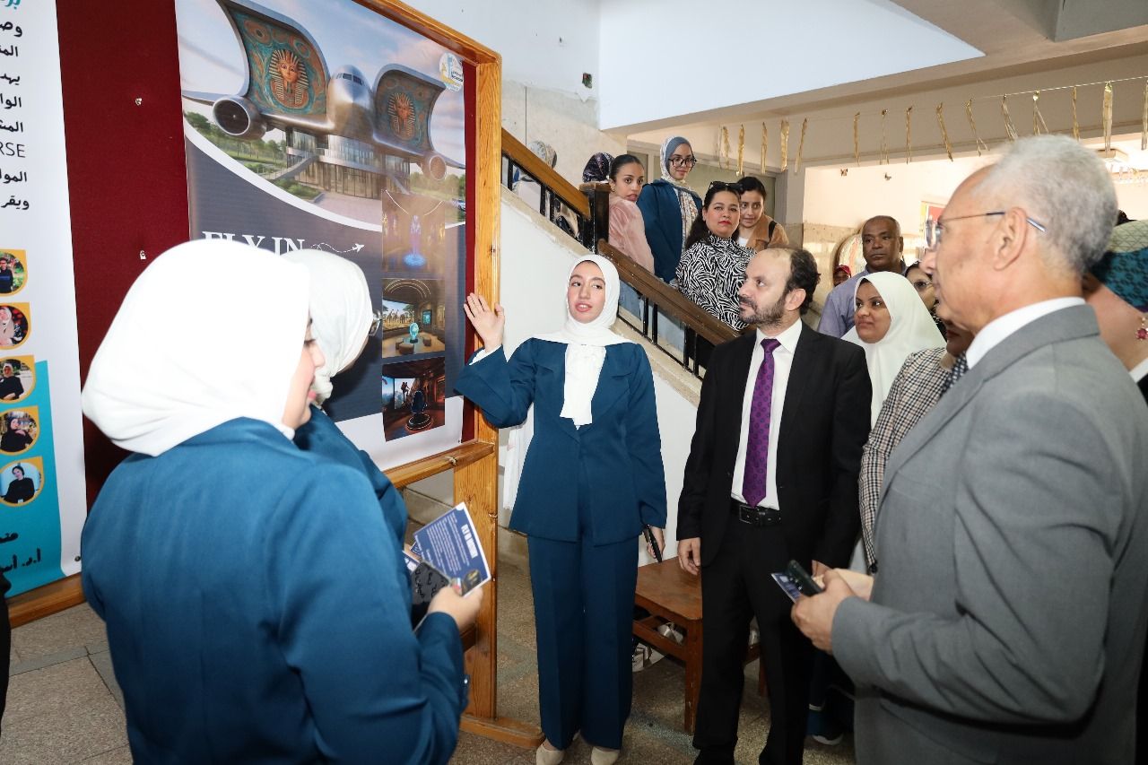 وخلال الفعاليات، تفقد رئيس الجامعة المعرض الطلابي الملحق بالملتقى، والذي ضم مشاريع مبتكرة في مجالات تكنولوجيا السياحة والضيافة، من بينها: مشروعات افتراضية وثلاثية الأبعاد، وعروض متحفية بتقنيات الهولوجرام للشخصيات التاريخية والمعروضات، وأفكار مبتكرة لمواقع إلكترونية للربط بين الآثار والصور الأثرية عبر رمز استجابة سريع QR يعرض معلومات تفصيلية صوتًا وصورة ونصًا، ودراسات جدوى لإنشاء فنادق بالعاصمة الإدارية يجمع بين التراث الحضاري والتكنولوجيا الحديثة.