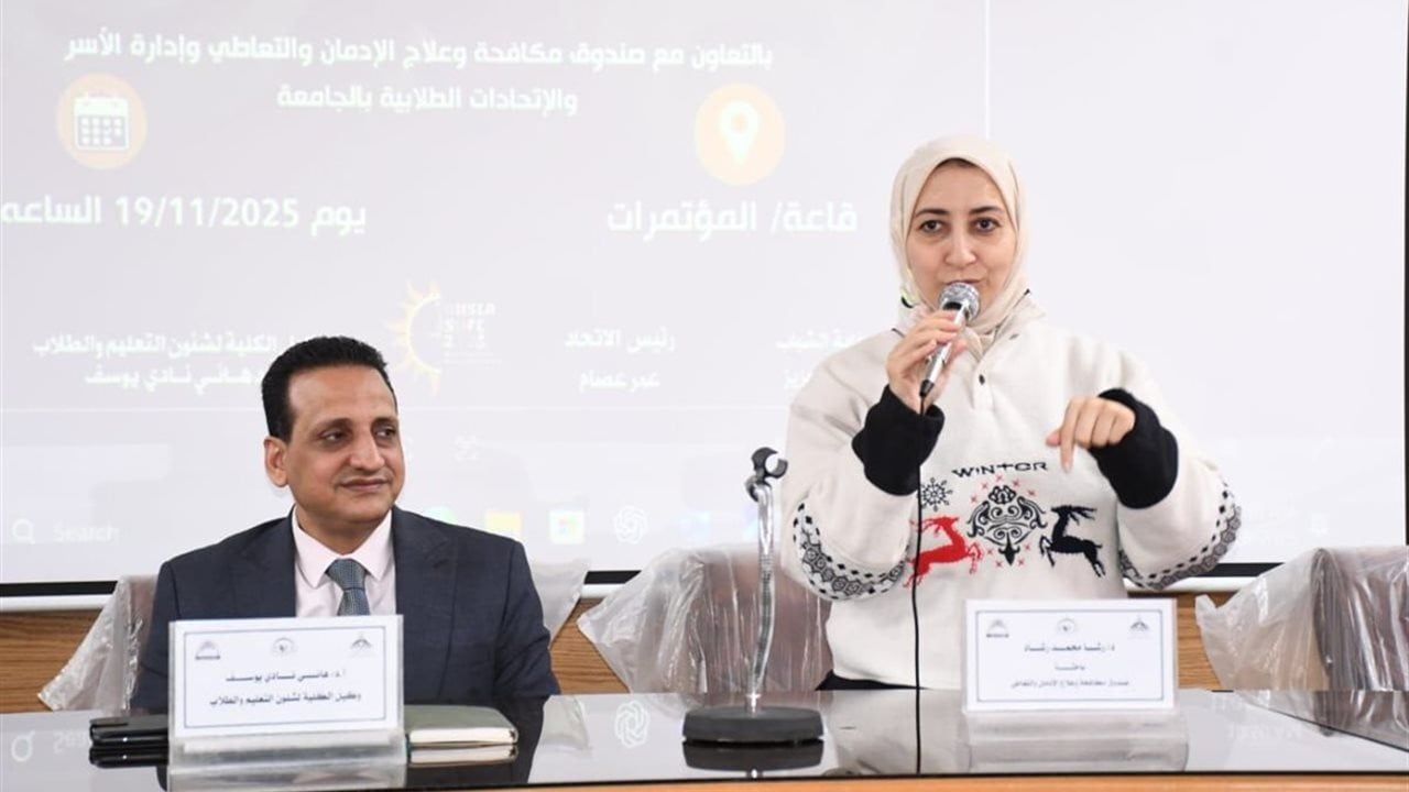 وخلال كلمته، شدد الدكتور هاني يوسف، وكيل كلية التربية لشئون التعليم والطلاب، على أهمية حماية الشباب الجامعي من مخاطر الإدمان، مشيرًا إلى أن الشباب دائمًا ما يكونون أكثر الفئات عرضة للاستهداف مؤكدًا على أهمية توعية المجتمع بعواقب الإدمان الصحية والقانونية.